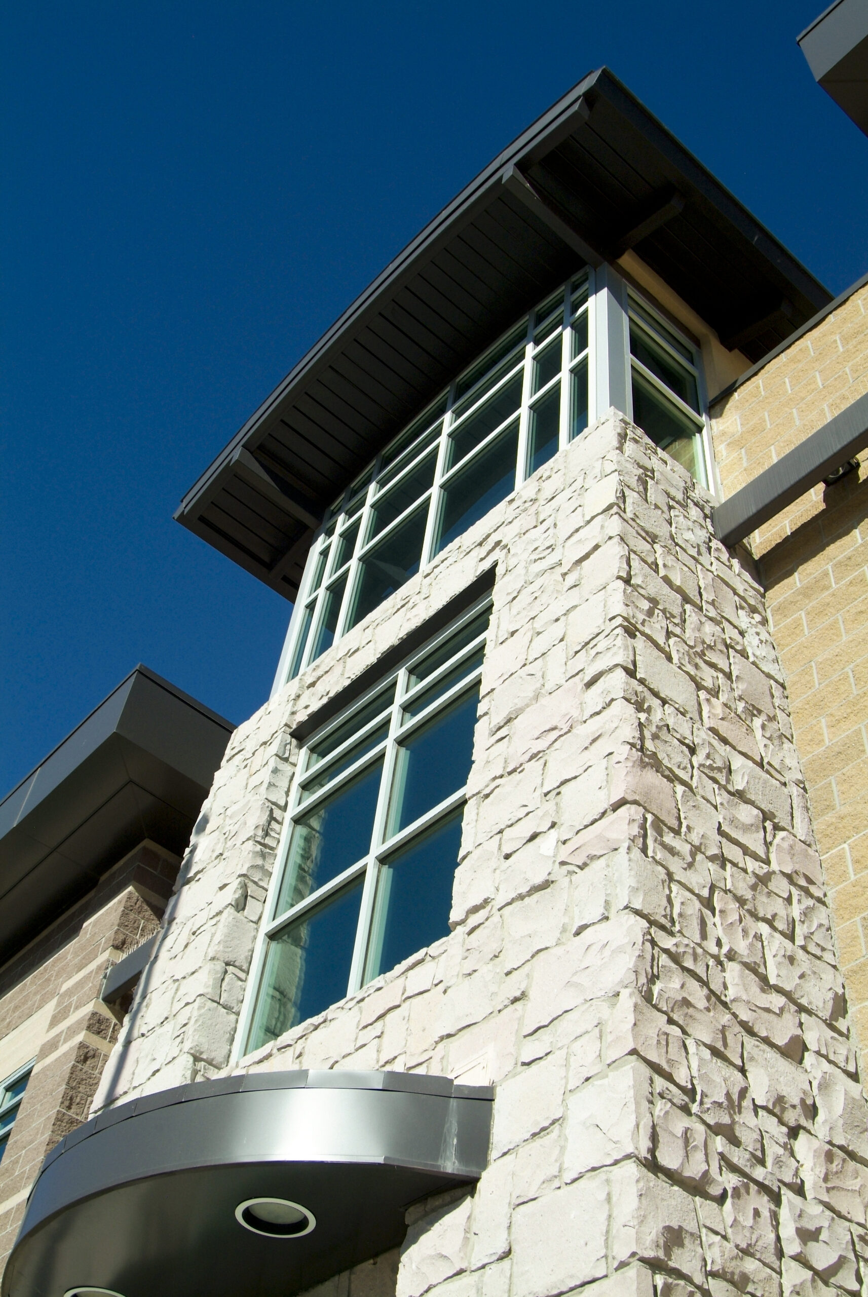 The project also included standing seam roofing, aluminum storefront entrances and storefront windows. The building houses office, storage and meeting space, in addition to laboratory and exam room spaces.