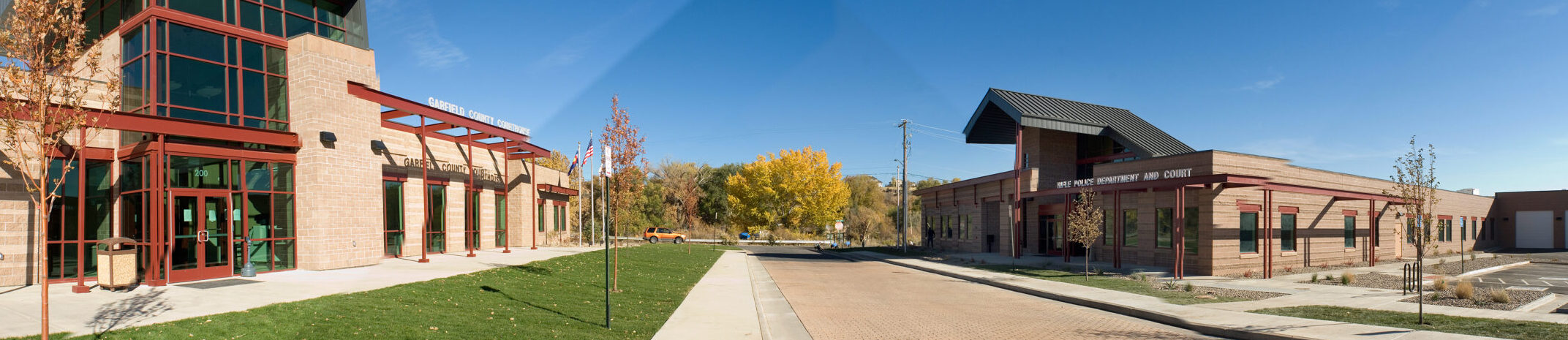 This joint venture between Garfield County and the City of Rifle consists of three buildings. The first is a 16,000 sq-ft justice center. It houses offices for the probation department, the district attorney, and the sheriff. Other spaces include a courtroom, judge’s chambers, attorney client rooms, jury assembly, jury deliberation, holding rooms, office space for the clerk of the court, office space for probation, and building support.