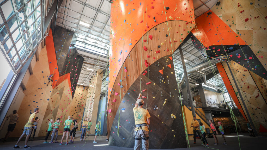 This project involved the construction of a 20,733 SF pre-engineered metal building (PEMB) designed for an indoor climbing facility. The building features two-story climbing walls reaching up to 43 feet, a mezzanine level with party rooms, an exercise gym, and a yoga studio, all accessible via stairs and an elevator.